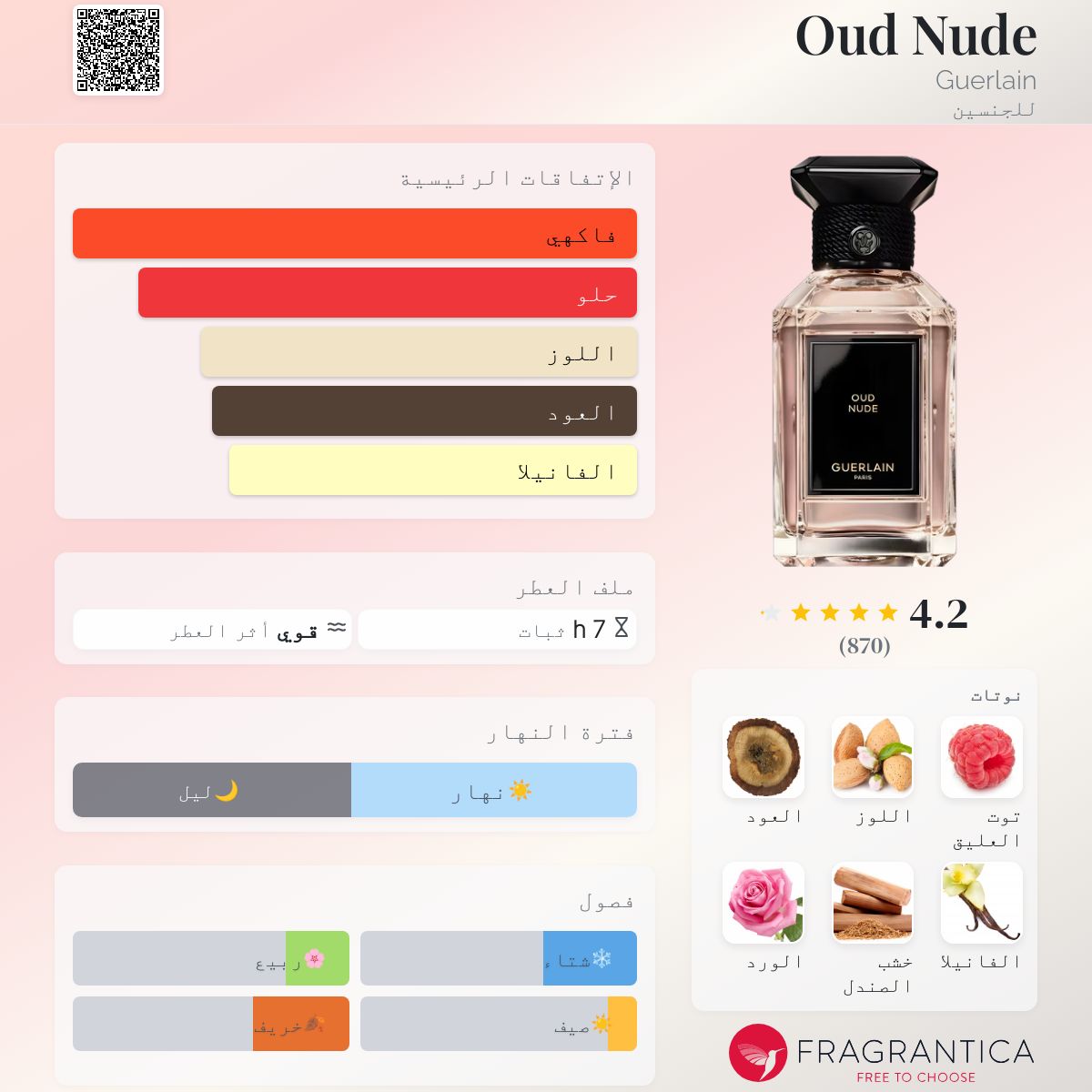 💎 Oud Nude هو عطر خشبي شرقي للرجال و النساء، يعبّر عن الترف البسيط والأنوثة أو الرجولة الهادئة بلا مبالغة. يناسب محبي الروائح الغامضة التي تجمع بين الدفء والرقي، ويترك أثرًا لا يُنسى أينما حلّ.