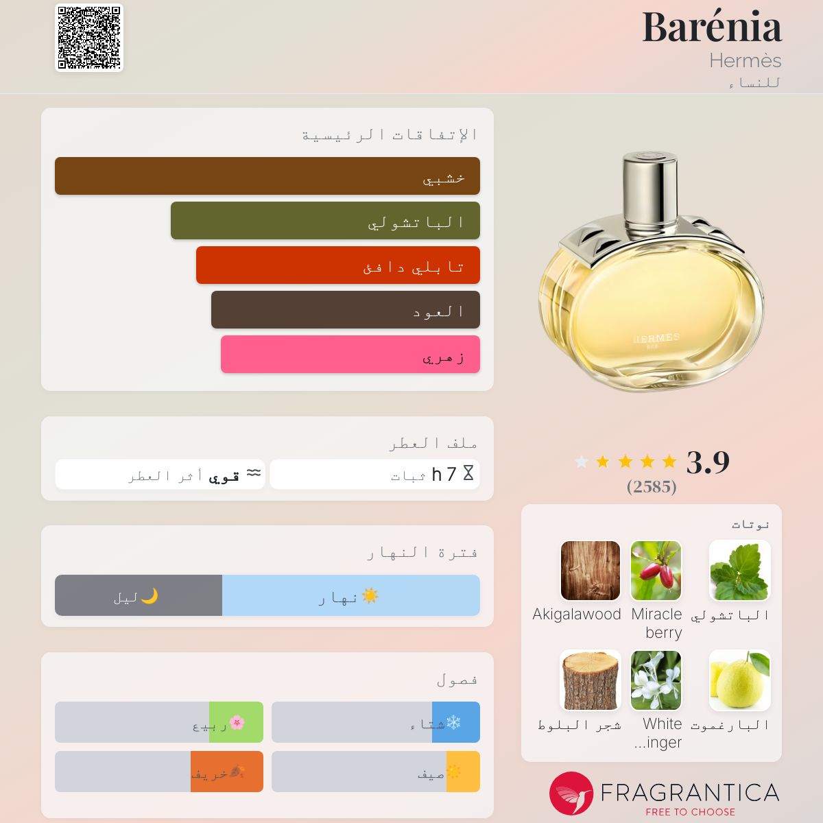 تجسيد للأناقة الباريسية برائحة تجمع بين الفخامة والدفء، يأتي Barénia من Hermès ليحاكي ملمس الجلد الفاخر ورونق الطبيعة المتألقة.