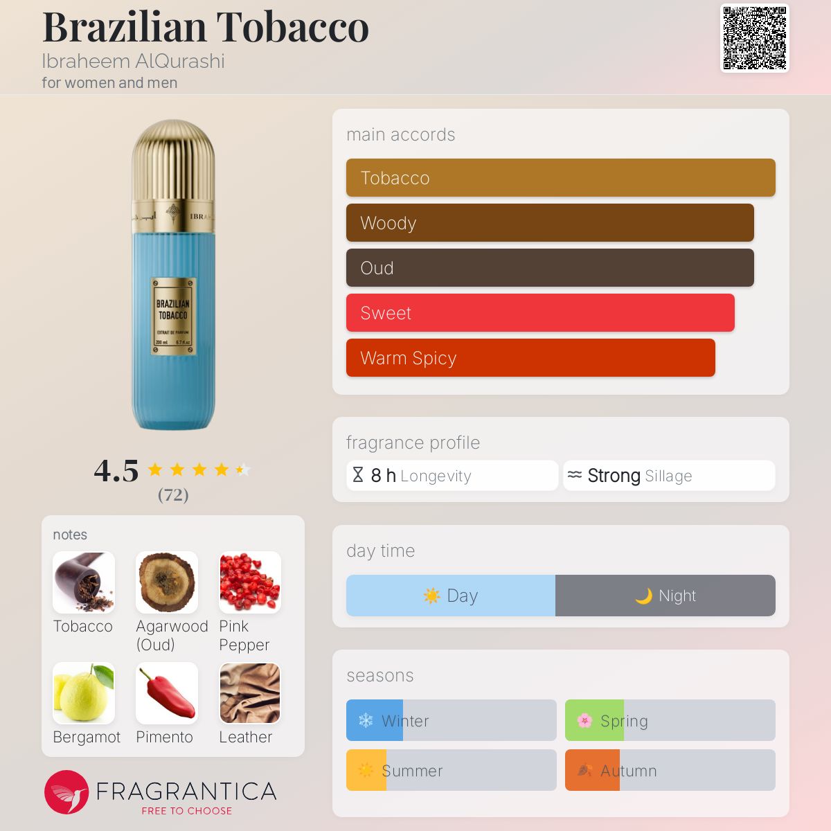 💨 Brazilian Tobacco هو عطر القوة الهادئة والجاذبية الراقية — مزيج مثالي بين الدخان والنعومة، بين الغموض والترف.