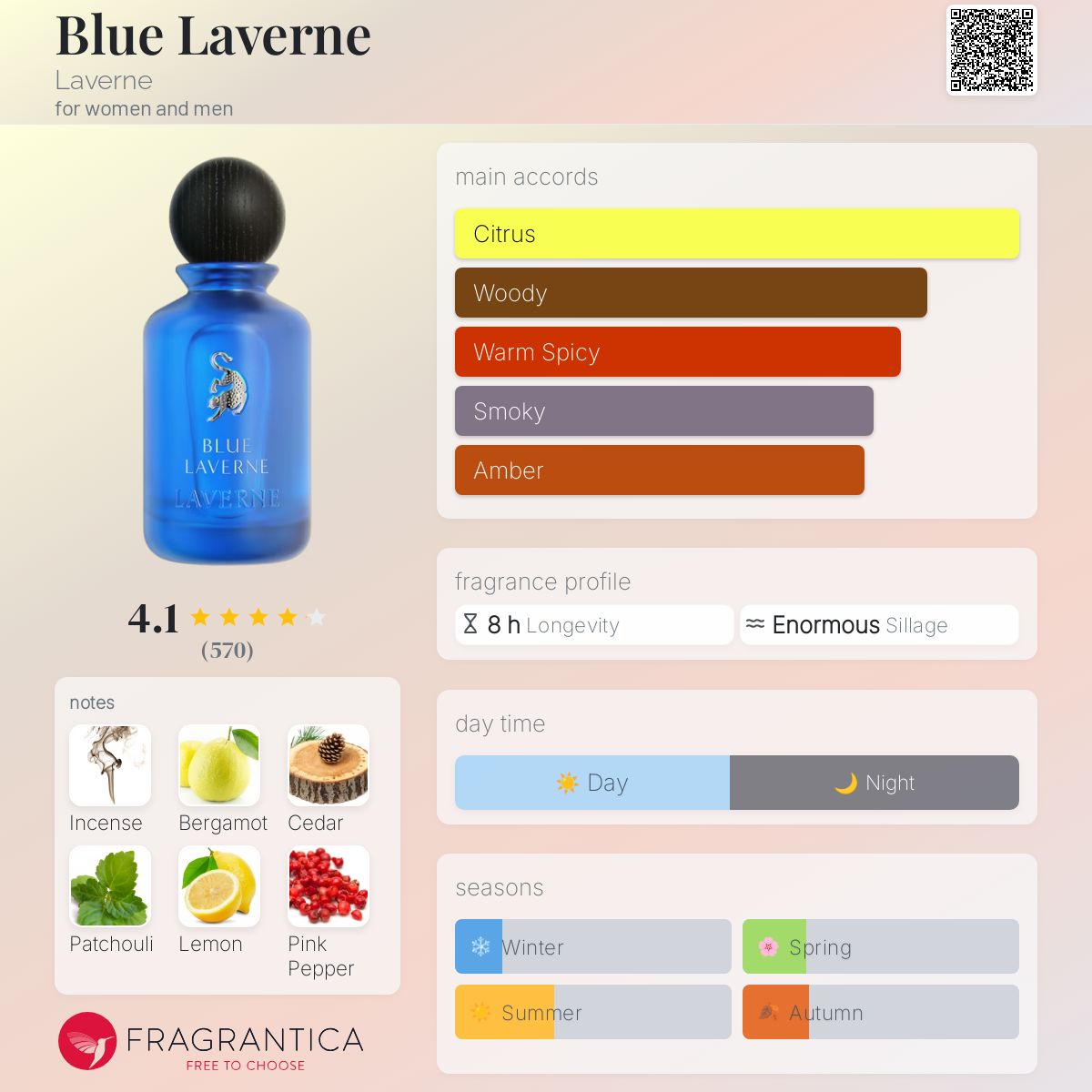 في قلب العطر، ينبض المزيج العميق من البخور والجلود والباتشولي مع لمسة من الياسمين، ليخلق هالة غامضة تجمع بين الدفء والترف العطري الساحر.