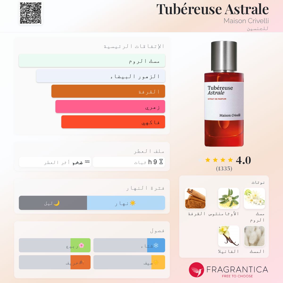 عطر فاخر يجسد الأنوثة والجاذبية بتركيبته الغنية والمركزة. يتميز هذا العطر بتركيبة ساحرة تحتفي بجمال زهرة التوبيروز مع لمسات من النفحات الزهرية والشرقية التي تضفي عليه عمقًا وفخامة. يُعد “توبيروس أسترال” الخيار المثالي للمرأة التي تبحث عن عطر يعكس الأناقة والرقي في كل مناسبة