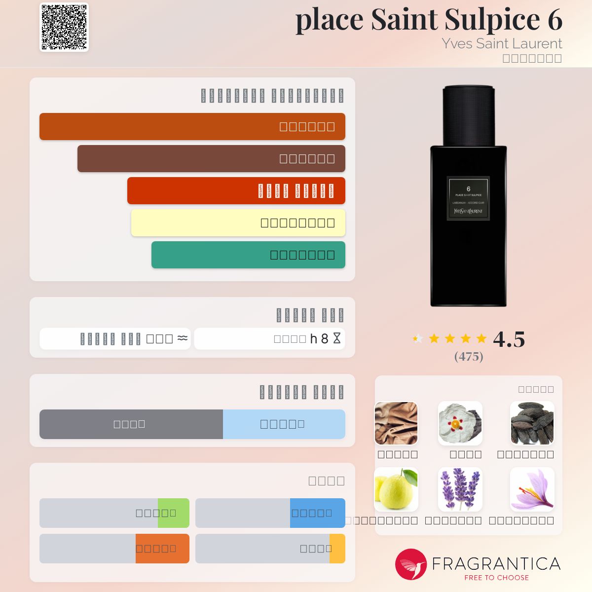 يجسد هذا العطر أجواء باريسية ساحرة عند غروب الشمس في ساحة سانت سولبيس، حيث يلتقي الدفء الشرقي بالتوابل الغنية في تركيبة راقية ومميزة. يمنحك حضورًا قويًا وجاذبية لا تُنسى، فهو مثالي لعشاق الأناقة والتميز الذين يبحثون عن عطر يحمل مزيجًا من الفخامة والغموض.